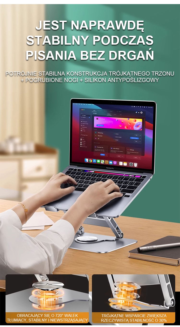 Obrotowy o 360 stopni stalowy uchwyt na komputer
